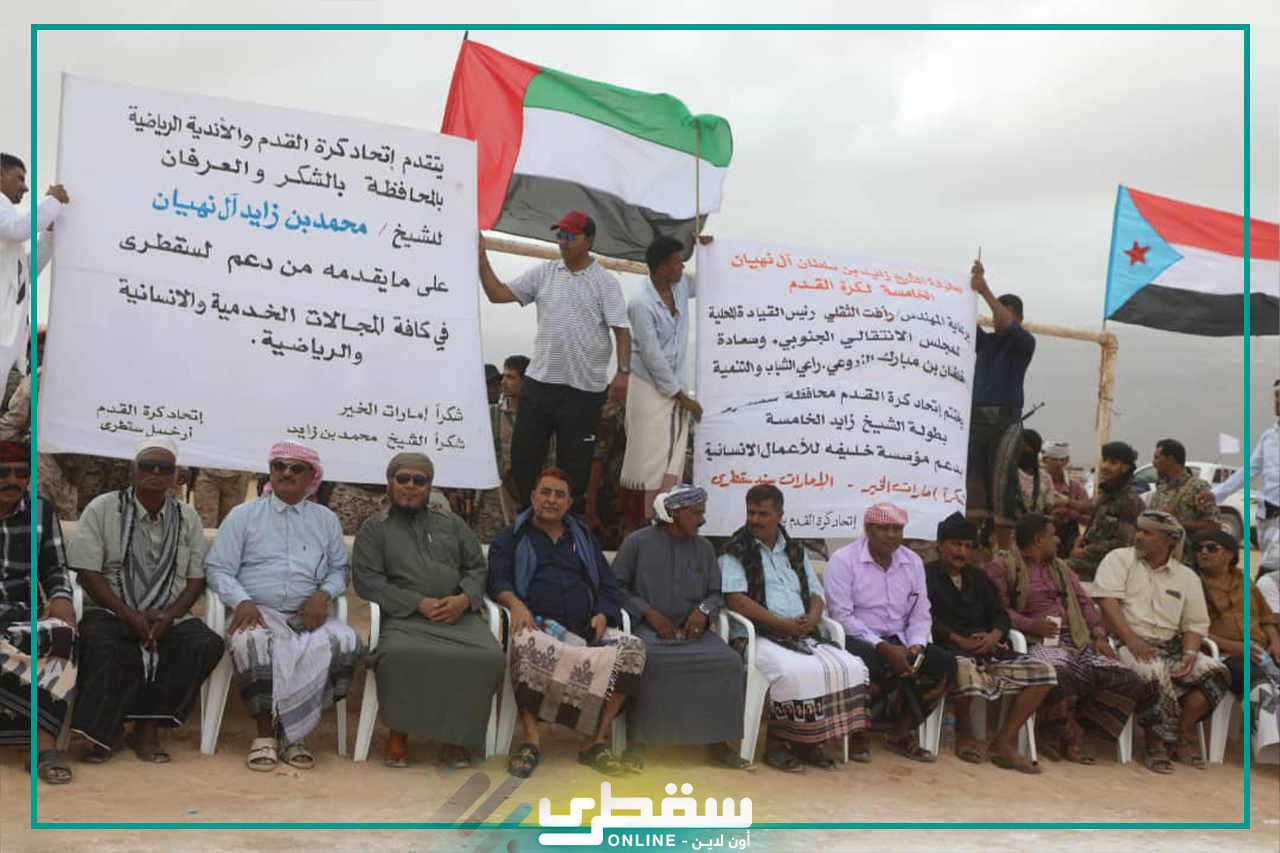 وشهدت المباراة النهائية وحفل التتويج رفع صور الشيخ زايد طيب الله ثره والشيخ خليفة بن زايد رئيس دولة الإمارات وولي عهده الأمين محمد بن زايد ولافتات تعبر عن شكر أبناء الحزيرة والقطاع الرياضي بشكل خاص للإمارات على كل ما تقدمه من خدمات وأعمال جليلة لامست احتياج واقعهم وانهت معاناتهم السابقة.