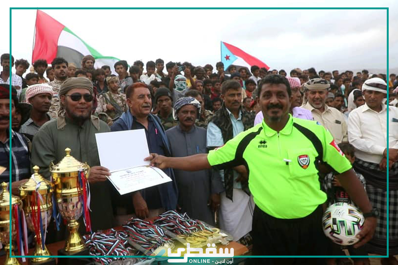 وشهد حفل التتويج تكريم فرع الاتحاد لرعاة القطاع الرياضي وهم المندوب العام لمؤسسة خليفة رجل تنمية سقطرى وراعي الشباب سعادة خلفان المزروعي ورئيس المجلس الإنتقالي الجنوبي رأفت الثقلي و رئيس لجنة التنمية السلطان علي بن عيسى بن عفرار ومسؤول النشاط الرياضي إسماعيل الجنيبي بشهادات شكر وعرفان على كل ما ببذلونه من جهود في سبيل نهوض القطاع الرياضي وتميزه.