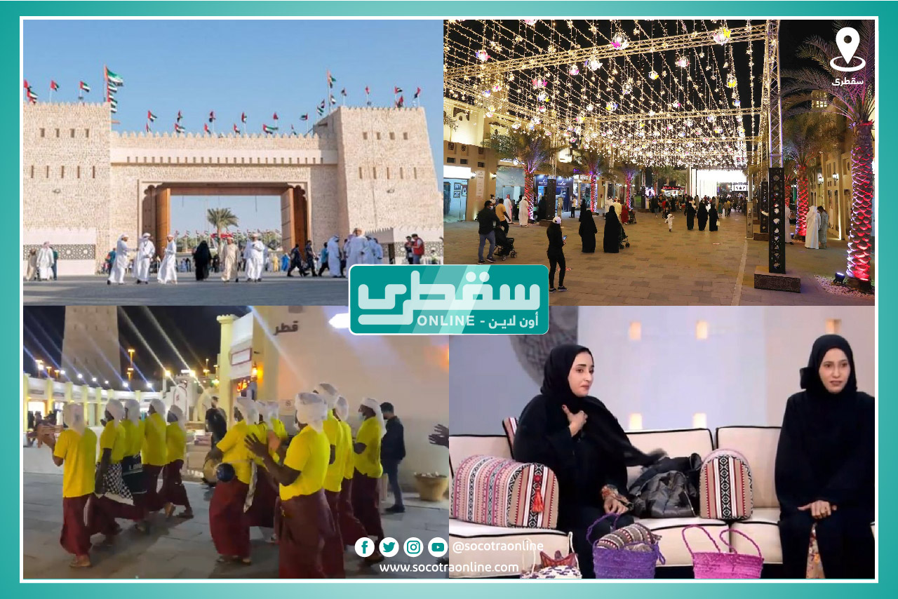 حيث يقدم الجناح السقطري بشكل يومي عروض من العادات والتقاليد السقطرية القديمة التي تعطي صورة جميلة عن الإرث الثقافي للأرخبيل وحضارتها الأصيلة.