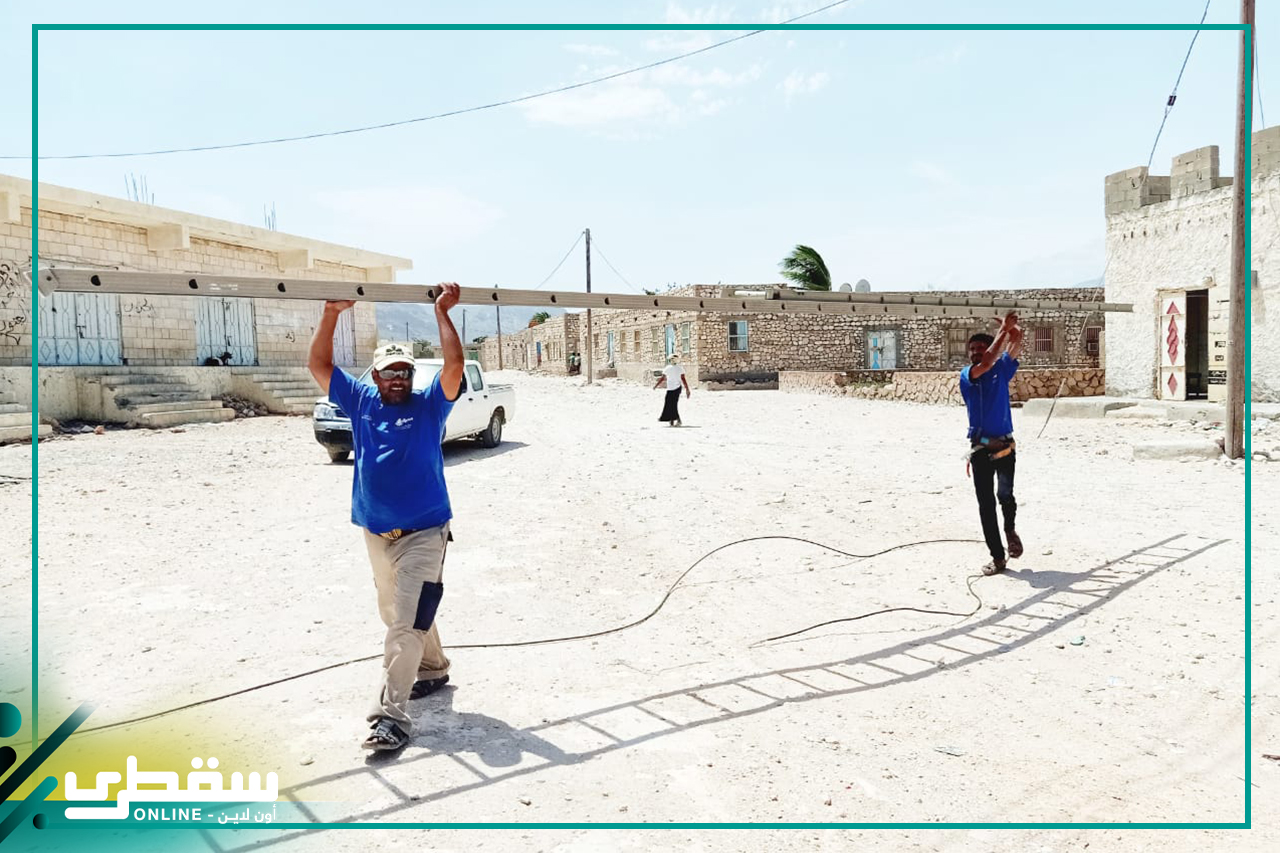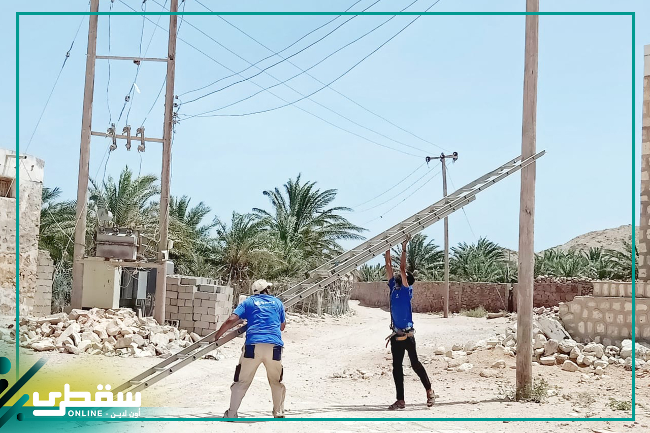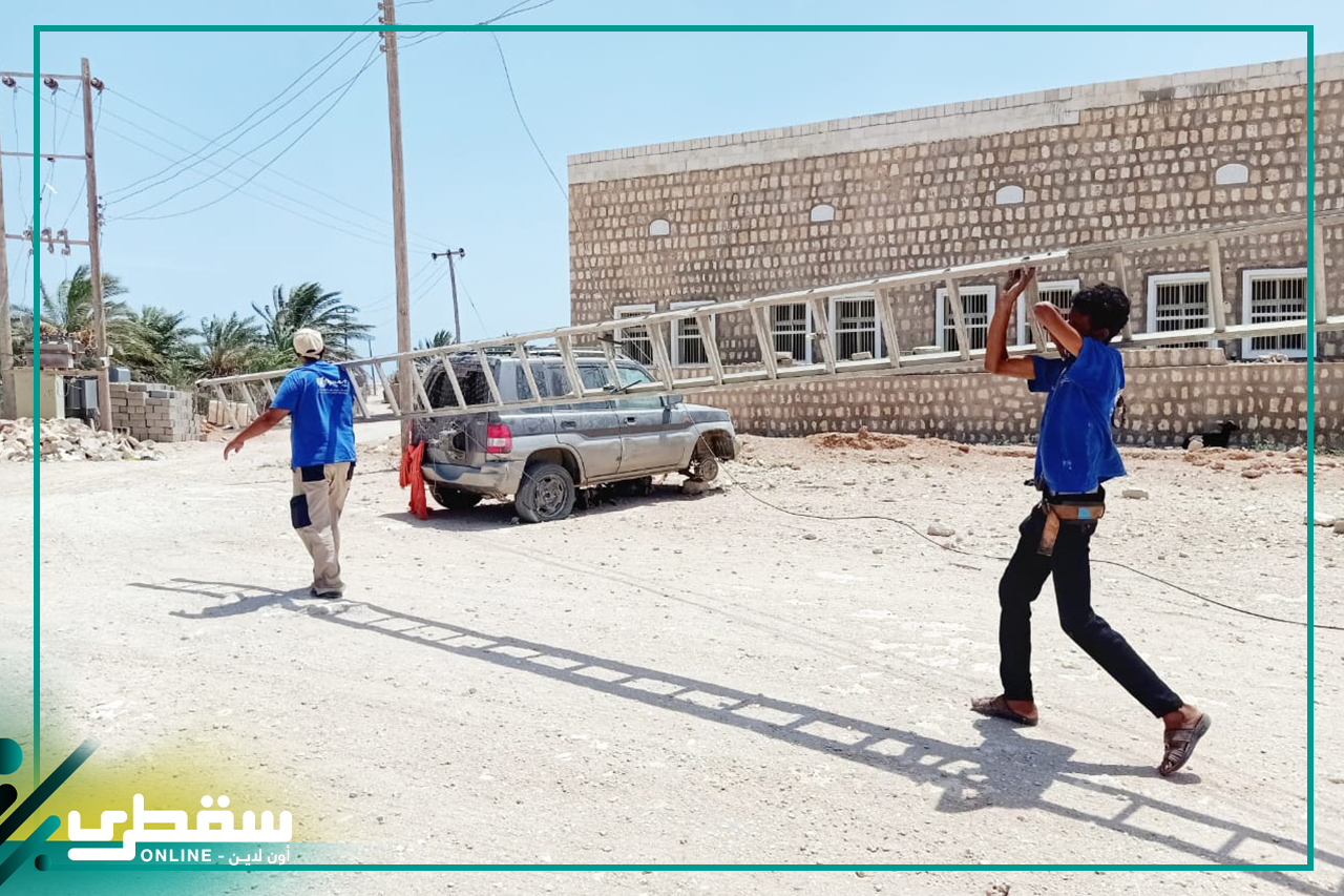 مازالت مؤسسة خليفة للأعمال الإنسانية تقدم دعم متواصل ومؤثر للمشاريع الكهربائية في جزيرة سقطرى ، حيث تقوم بتوجيه ودعم فرق الطورىء لشركة ديكسم باور التابعة لمحطة قلنسية من أجل ان تواصل عملها تعمل بشكل يومي في إصلاح الشبكة الكهربائية الهوائية المعروفه بالضغط المنخفض وخاصة في ظل إشتداد الرياح الموسمية ووصولها لذروتها بقوة تقدر 46كليو متر في الساعة والتي نتج عنها خروج بعض أحياء المدينه عن الخدمه بسبب إنقطاع الأسلاك .