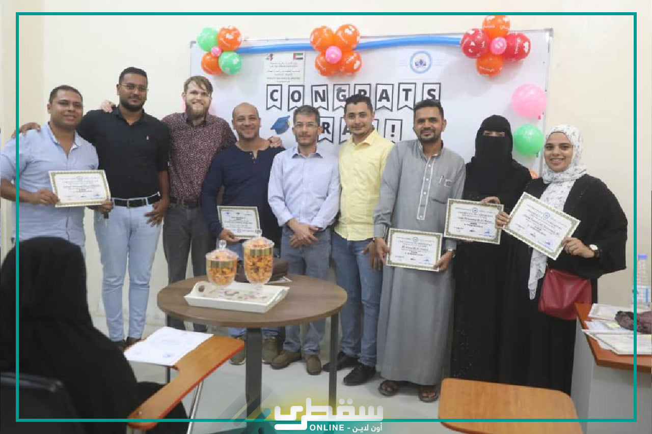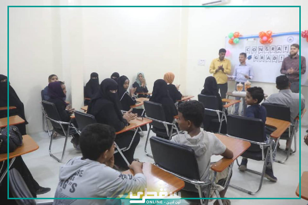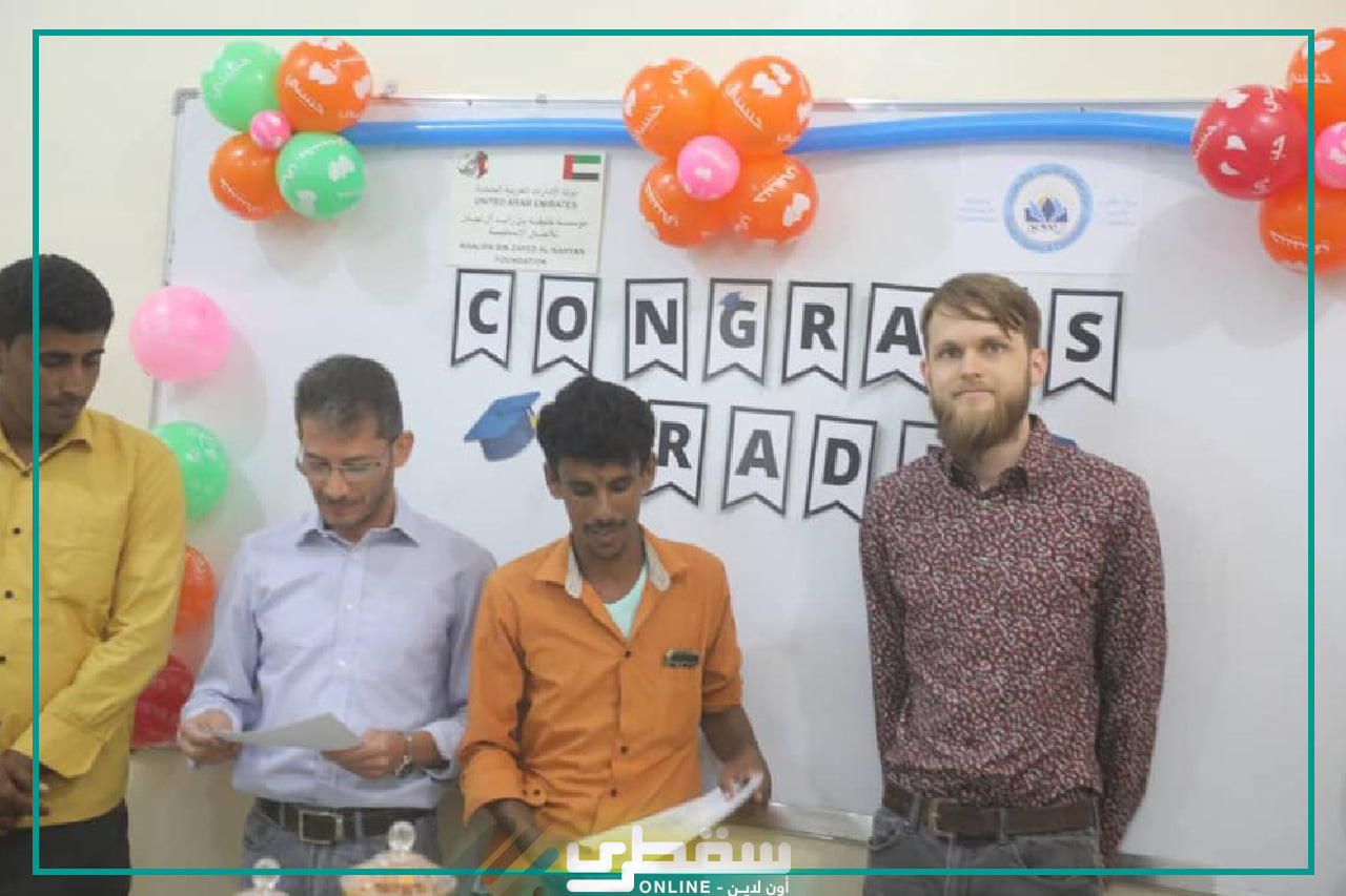 احتفل مركز سقطرى للتدريب والاستشارات بتكريم طلابه في المركز بعد اجتيازهم مستوياتهم الدراسية الحالية في اللغة الإنجليزية والحاسوب الآلي بدعم مؤسسة خليفة بن زايد آل نهيان للأعمال الإنسانية.
