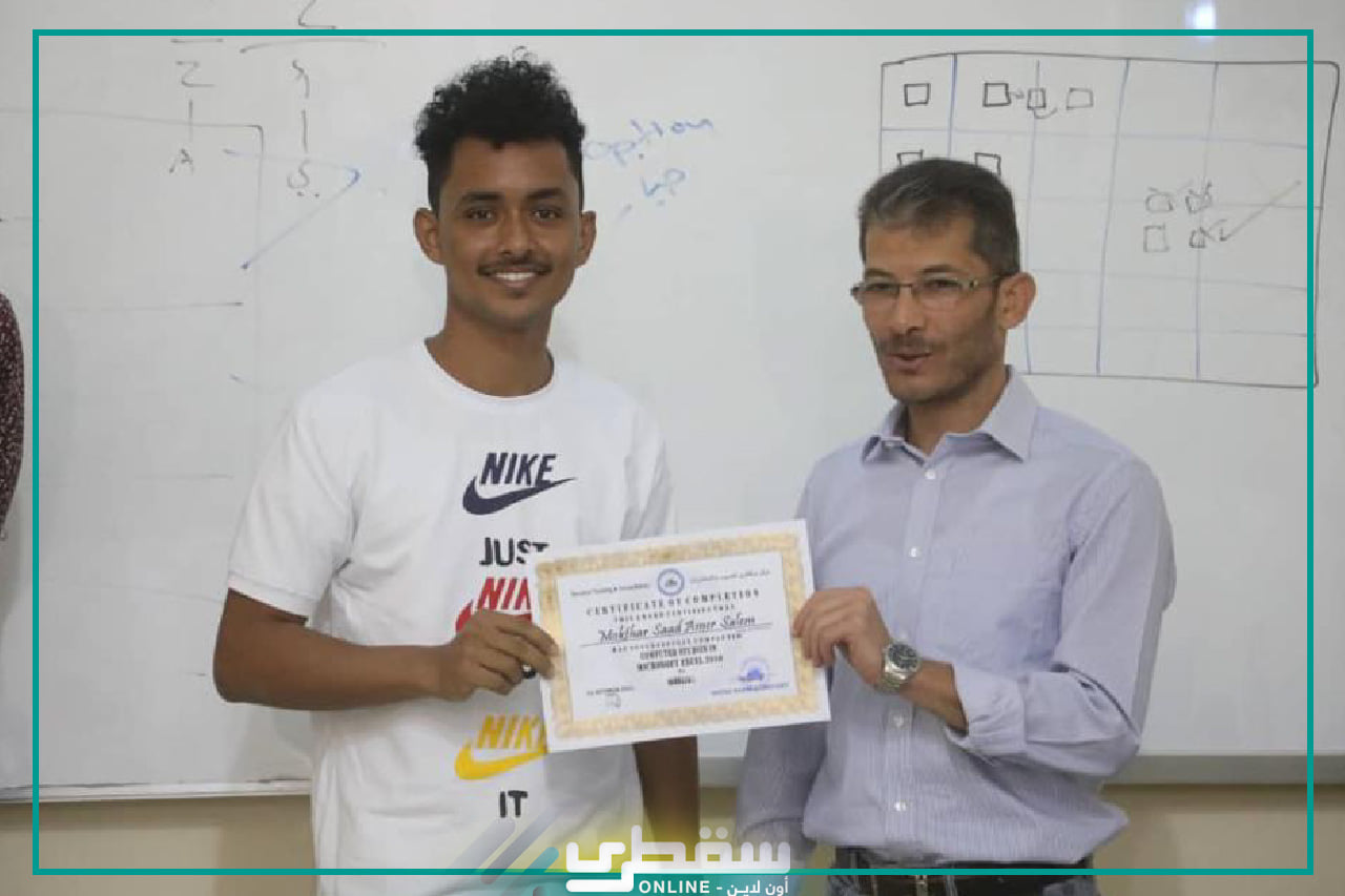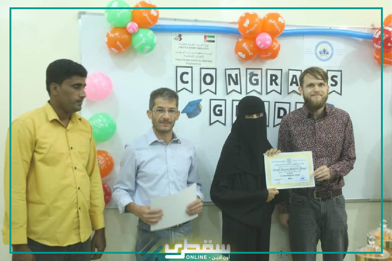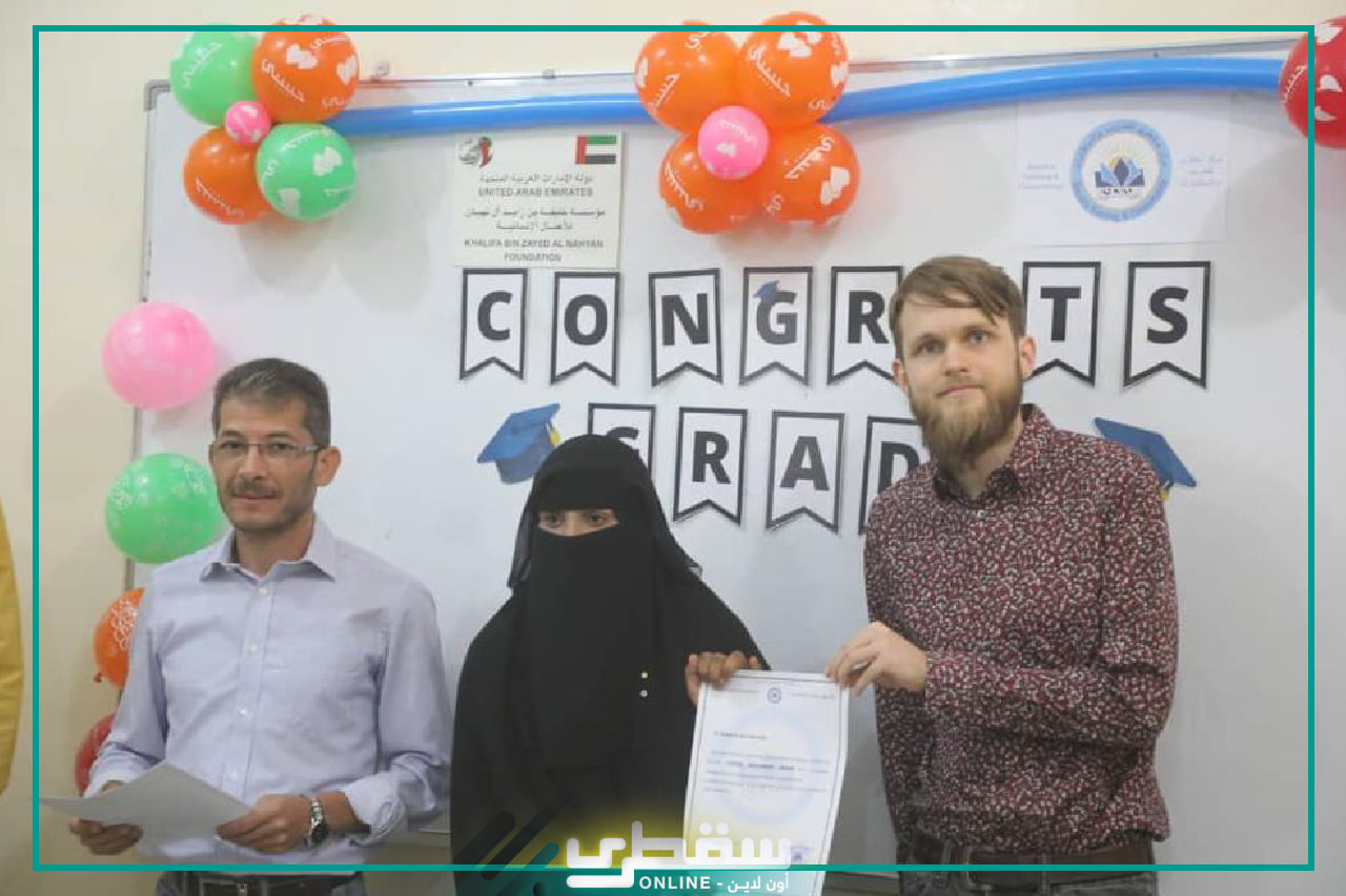 احتفل مركز سقطرى للتدريب والاستشارات بتكريم طلابه في المركز بعد اجتيازهم مستوياتهم الدراسية الحالية في اللغة الإنجليزية والحاسوب الآلي بدعم مؤسسة خليفة بن زايد آل نهيان للأعمال الإنسانية.