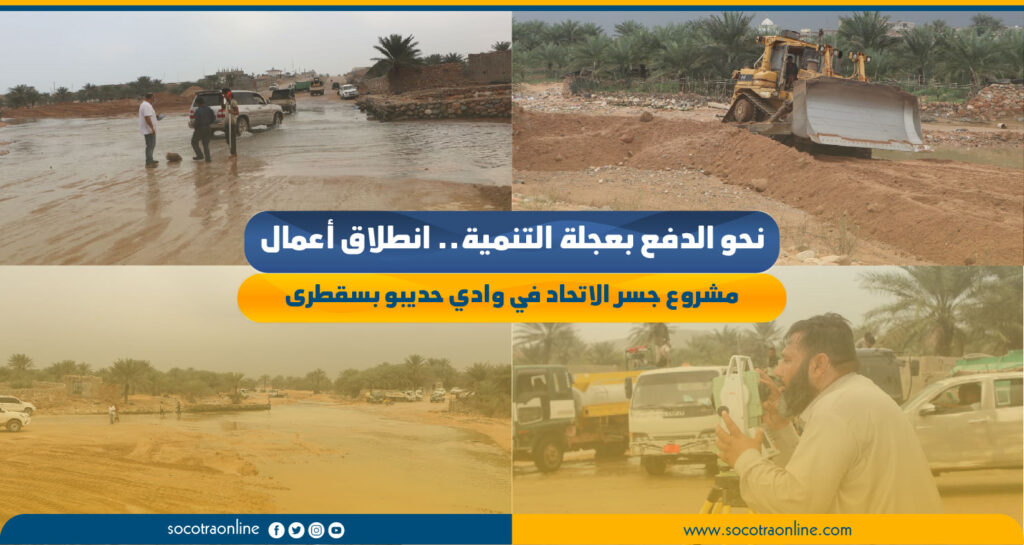 في خطوة نوعية تعكس التزامًا بتطوير البنية التحتية والدفع بعجلة التنمية في أرخبيل سقطرى، واستجابتا لنداء الأهالي باشرت صباح اليوم الفرق الهندسية أعمال مشروع جسر الاتحاد في وادي حديبو بدعم من مؤسسة خليفة بن زايد آل نهيان للأعمال الإنسانية.
