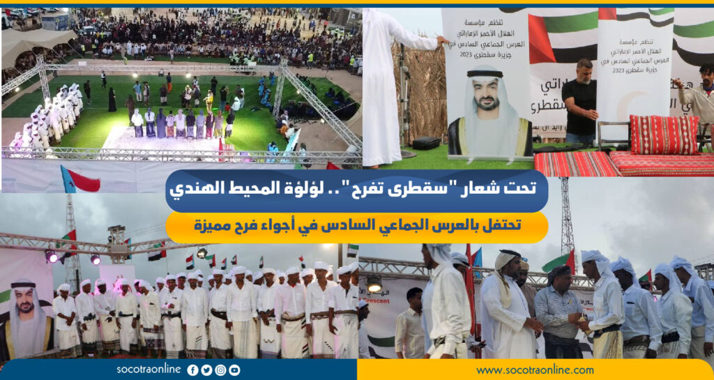 في ليلة من الفرح والسعادة وتحت شعار “سقطرى تفرح”، نظّمت إدارة مهرجان الشيخ وبدعم من هيئة الهلال الأحمر الإماراتي حفل العرس الجماعي السادس في جزيرة سقطرى حيث كان هذا الحفل عبارة عن مناسبة تجمعت فيها مائة عريس وعروسة.