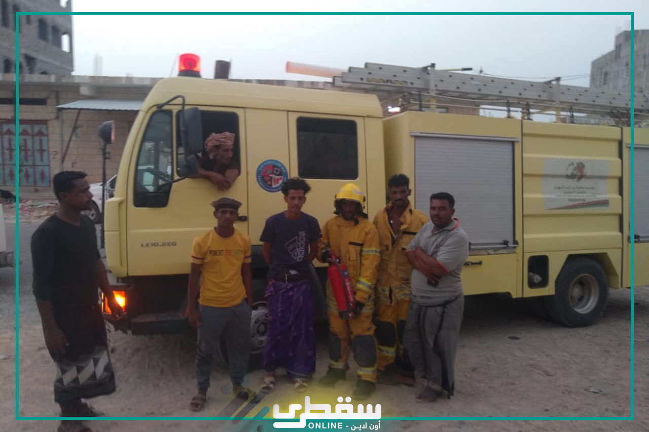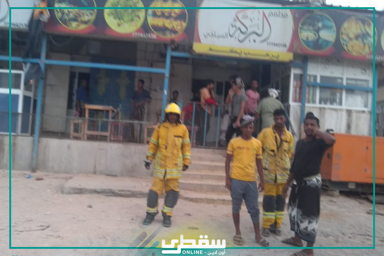 Teams of the civil defense of Khalifa bin Zayed Al Nahyan Foundation contaminated the fire that broke out in a restaurant in the capital Hadiboh. The civil defense was reported that fire broke out in Al Baraka Restaurant next to Socotra University. The team moved immediately to put out the fire, and there were no injuries.