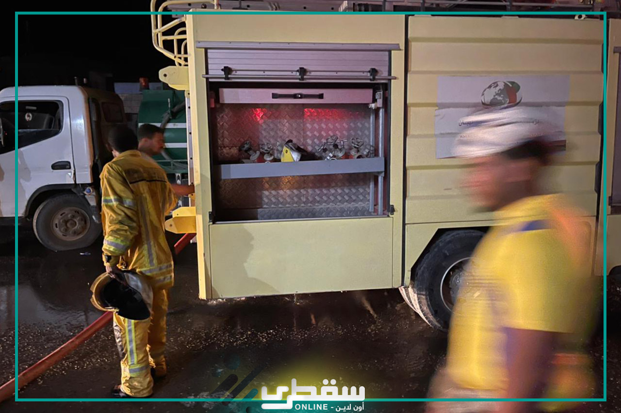 Civil Defense of Khalifa Foundation puts out Two Fires in Different Locations in the Capital Hadiboh Professionally