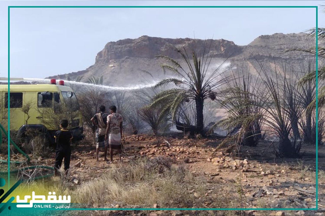 The Civil Defense Team of Khalifa bin Zayed Al Nahyan Foundation put out fire in three palm orchards located in Wadi Hashra in East of Hadiboh.