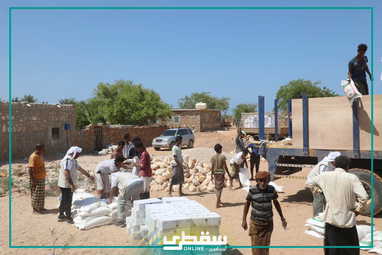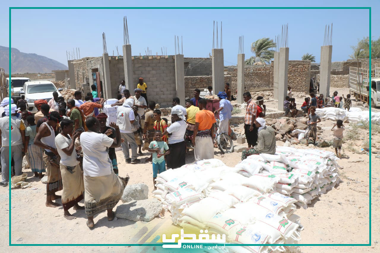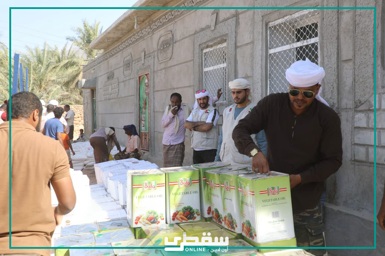 Khalifa Foundation teams continued distribution of food assistance to the families in 30th November District in Hadiboh in Socotra, from which hundreds of families in 25 avenues benefited, including rice, sugar, flour, oil, shahi, dates… etc.