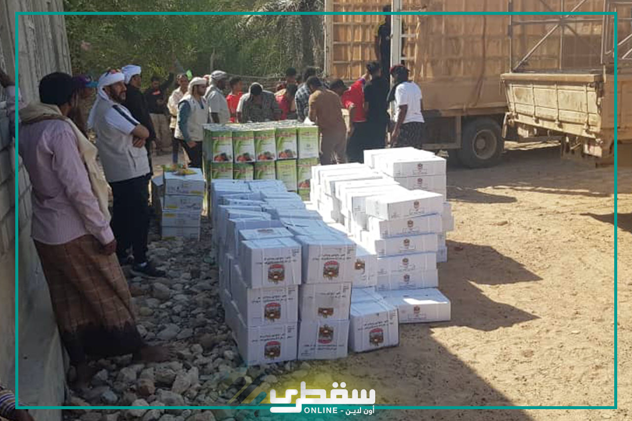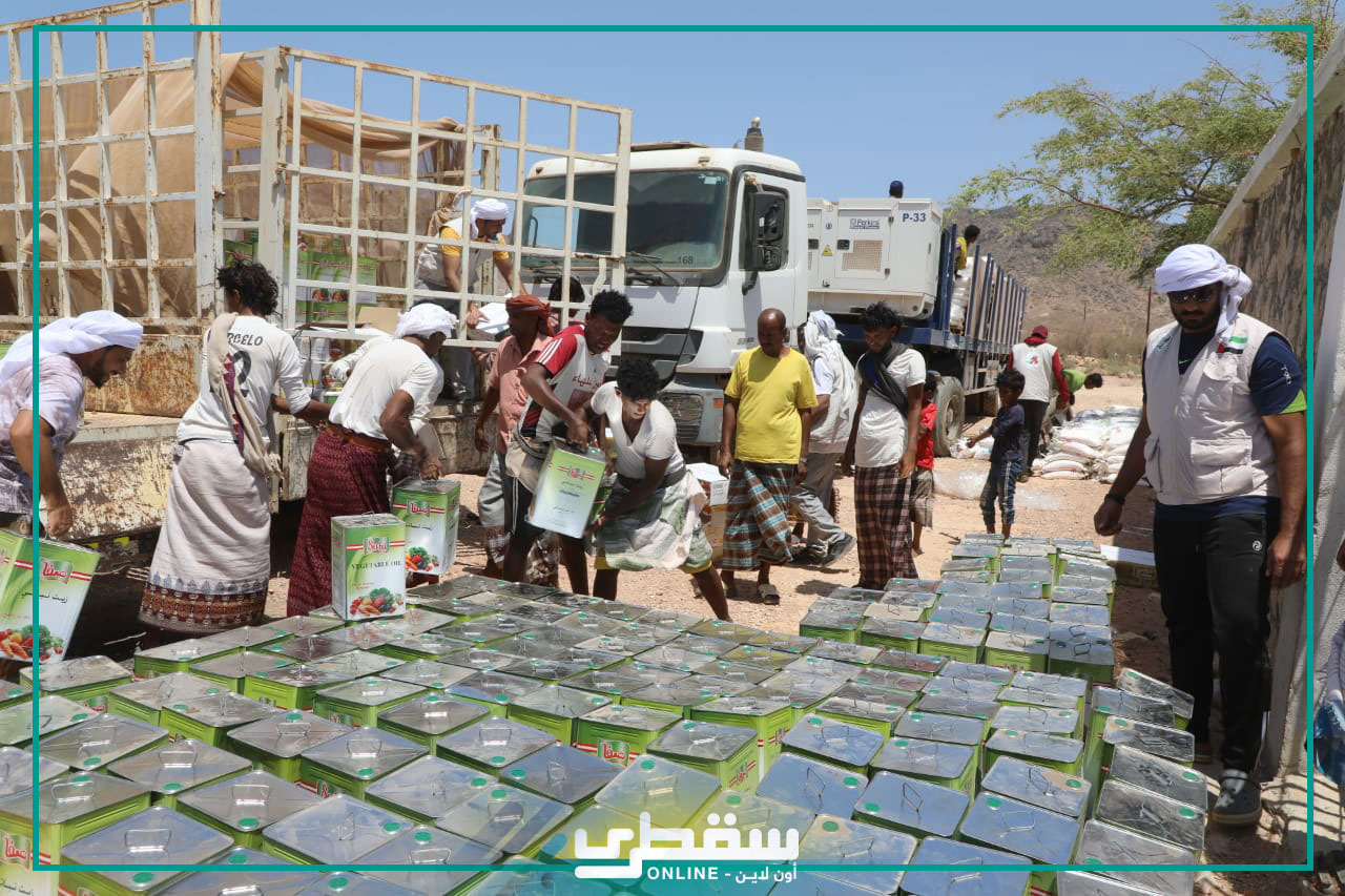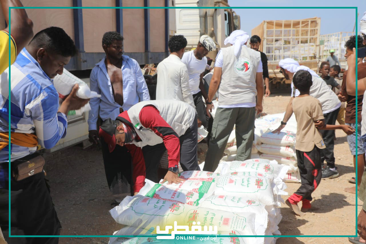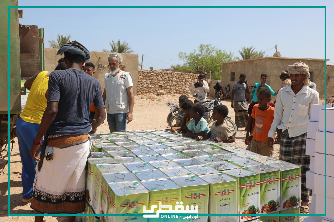 Khalifa Foundation teams continued distribution of food assistance to the families in 30th November District in Hadiboh in Socotra, from which hundreds of families in 25 avenues benefited, including rice, sugar, flour, oil, shahi, dates… etc.