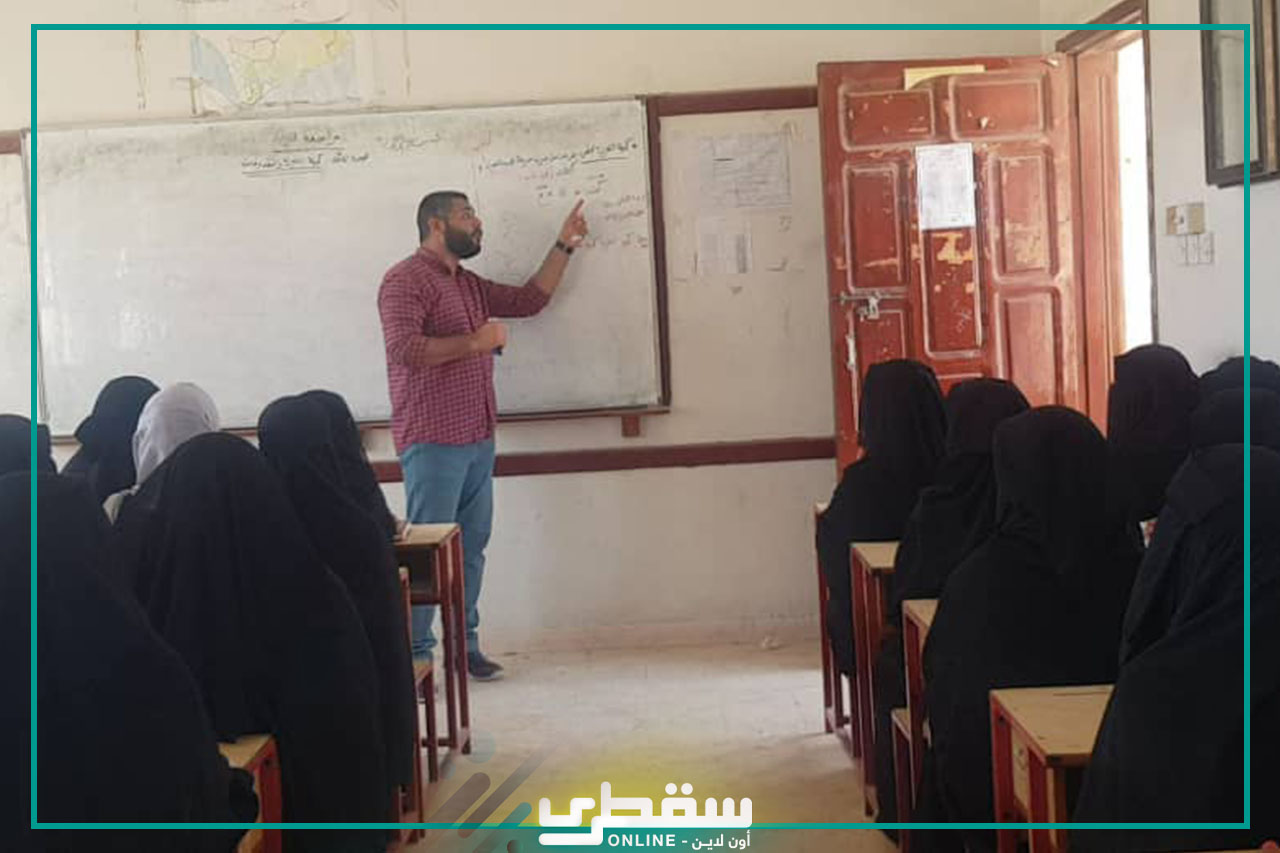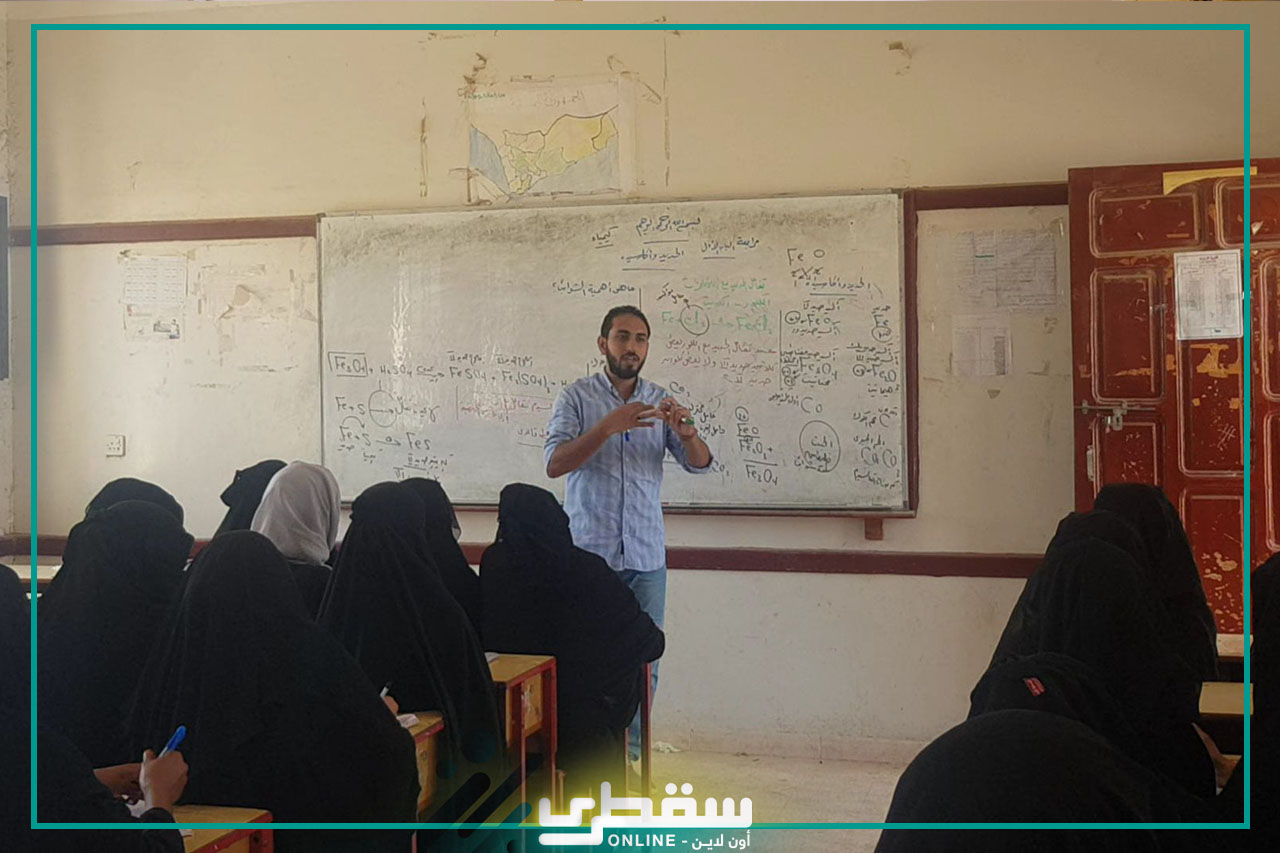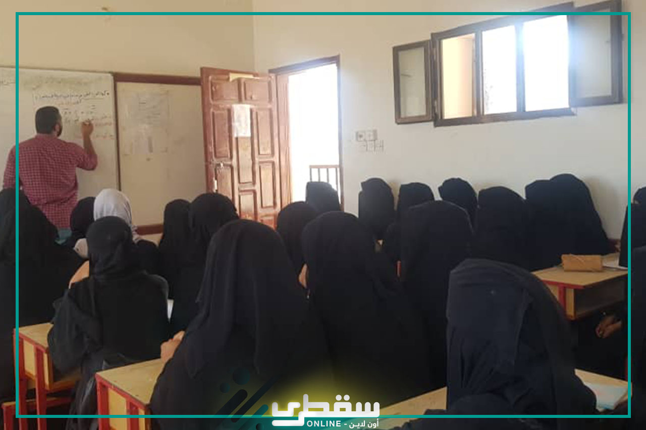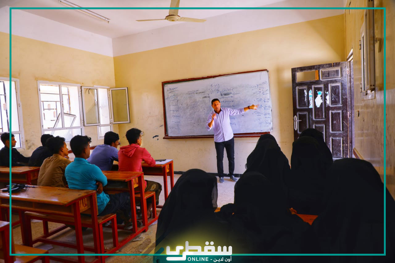 Socotra Online was briefed today on the course of the lessons in the classrooms, during which it monitored the efforts of teachers and the impressions of male and female students and the extent to which they benefited from the educational program implemented by teachers with scientific competence from the Arab Republic of Egypt. Scientific study subjects such as mathematics, physics, chemistry and biology, at the rate of two lessons per day for an hour and a half, and we asked students the extent of their interaction and their eagerness to inquire about any notes, which is a positive thing that helps them pass the final exams that are about to come.