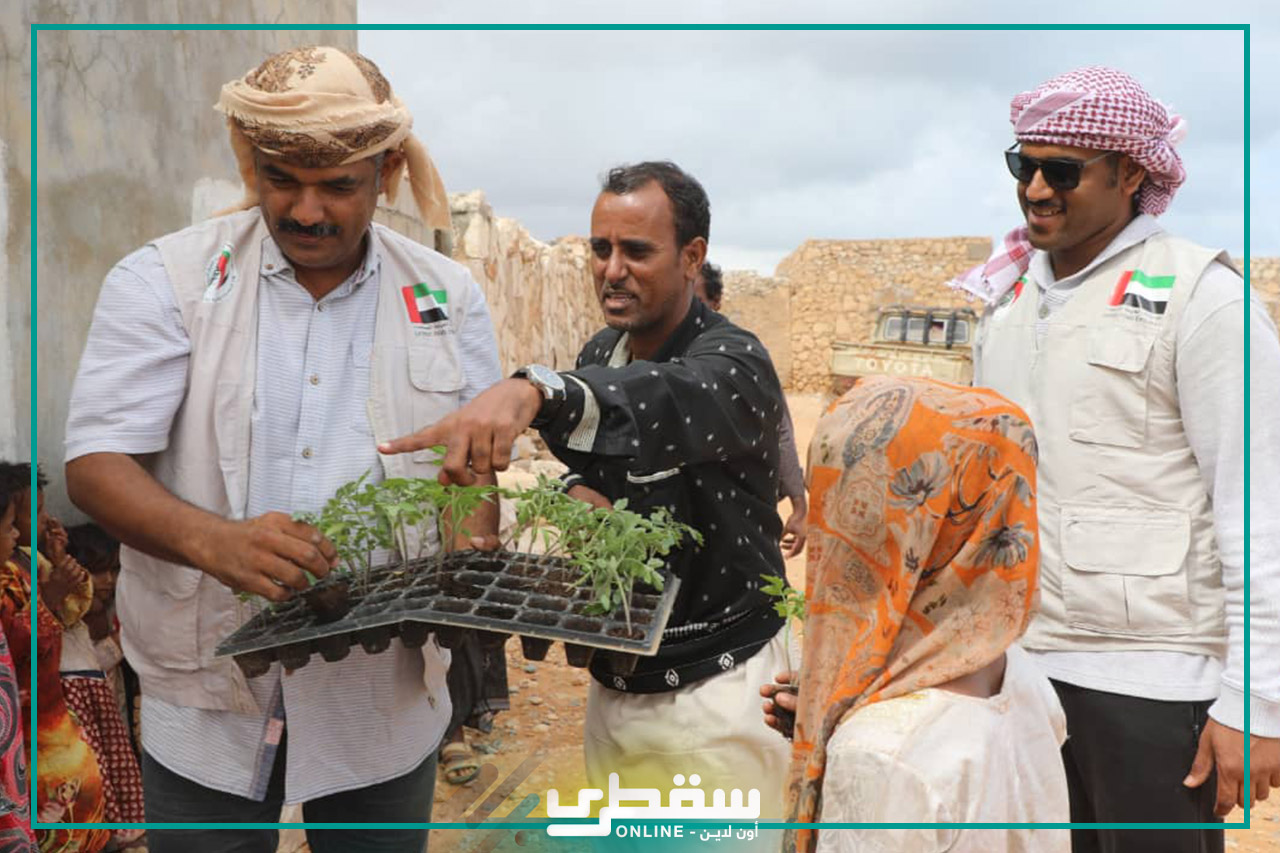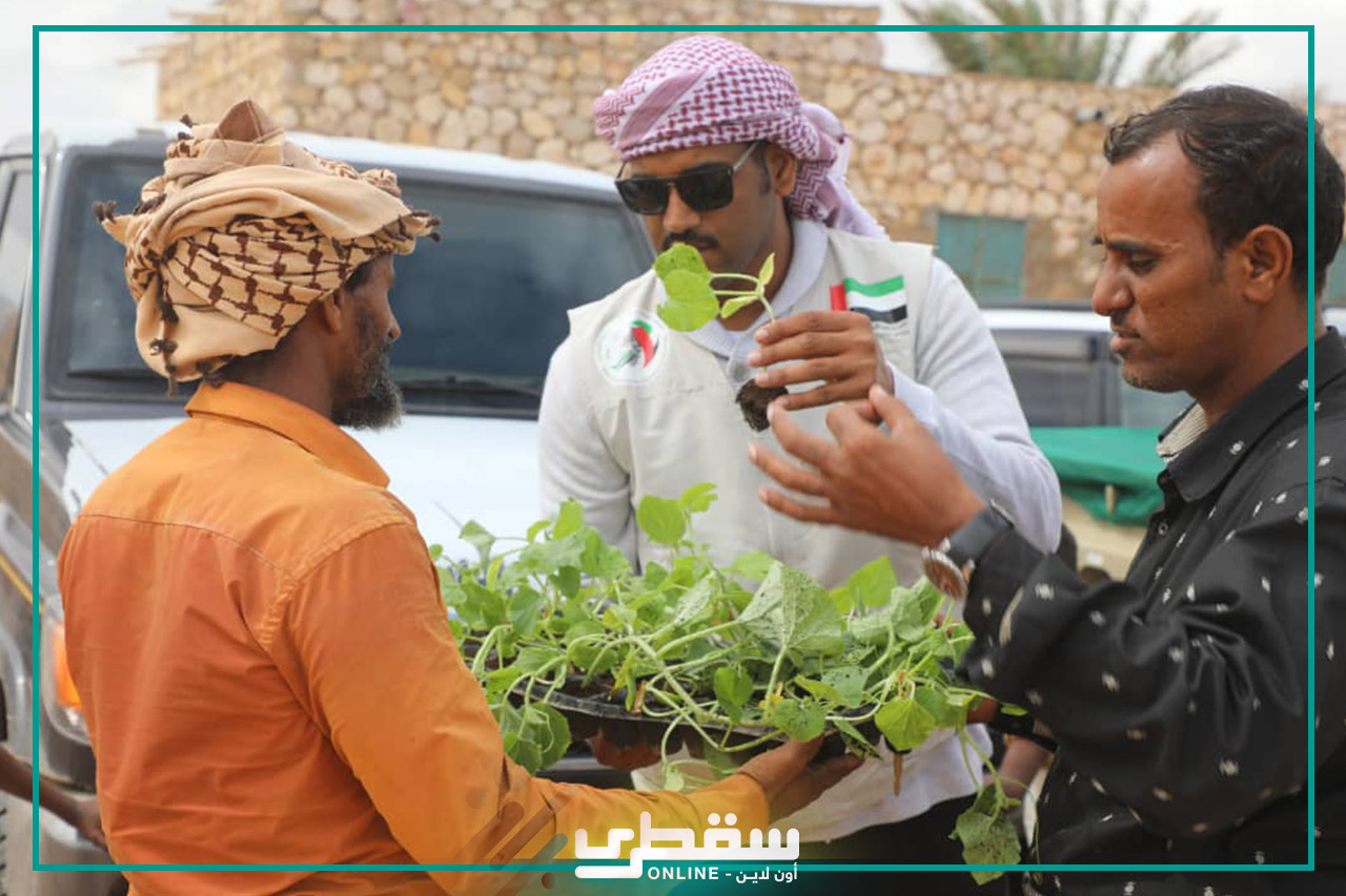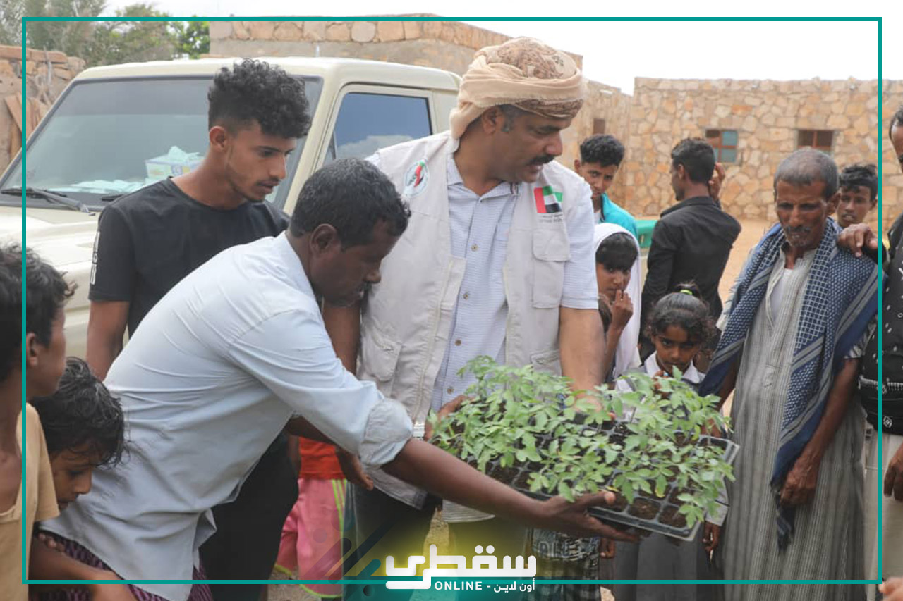 Khalifa Foundation continued distribution of seedlings to farmers in Socotra, as the team of Khalifa Foundation distributed 3,000 seedlings of different kinds of vegetables and fruits to farmers across the western coastline.