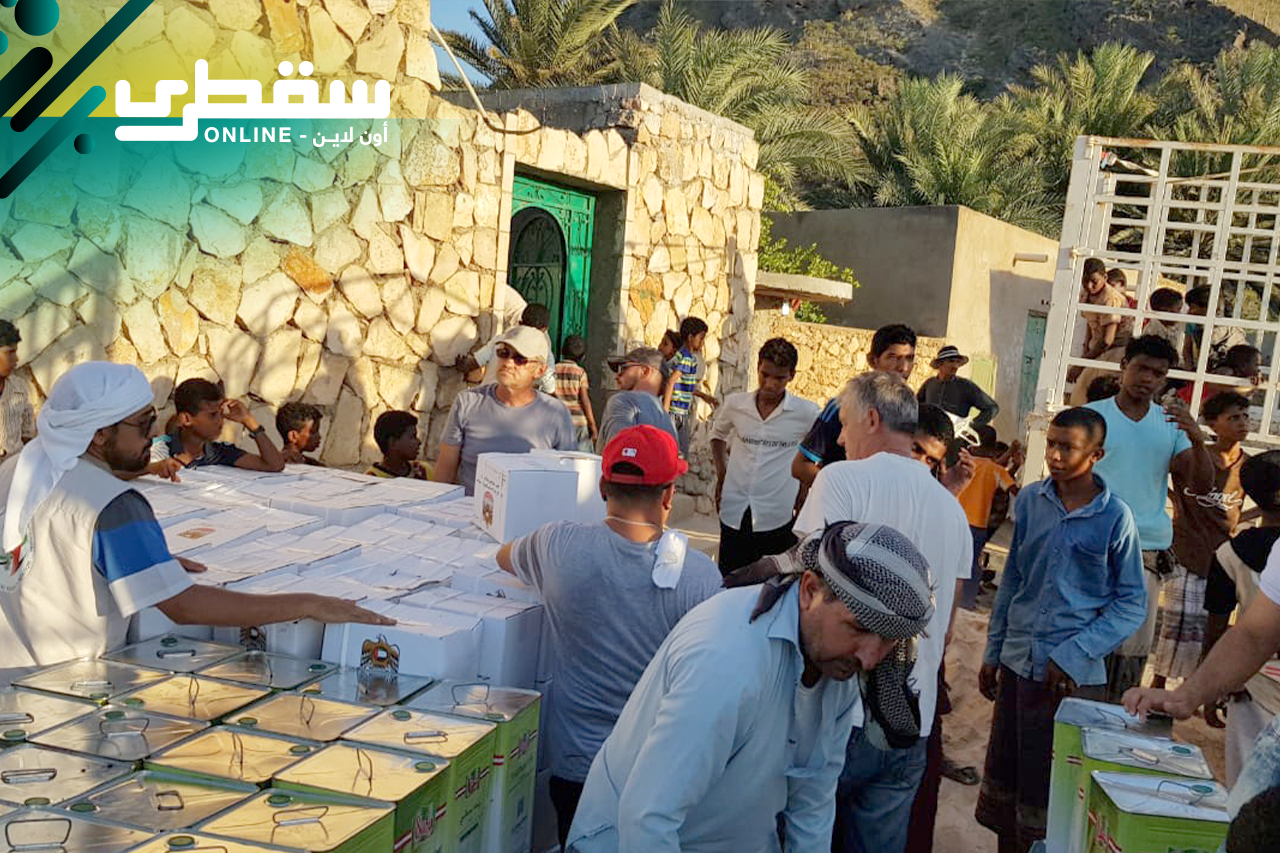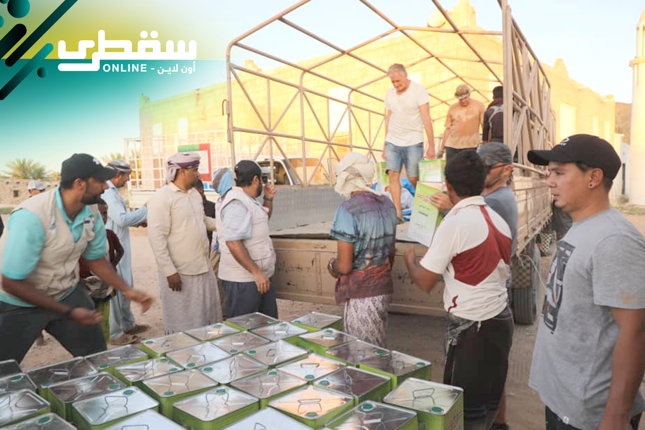 This food assistance was provided by the United Arab Emirates represented by Khalifa Foundation and the Emirates Red Crescent to contribute to helping the people of Socotra in arranging their life necessities.