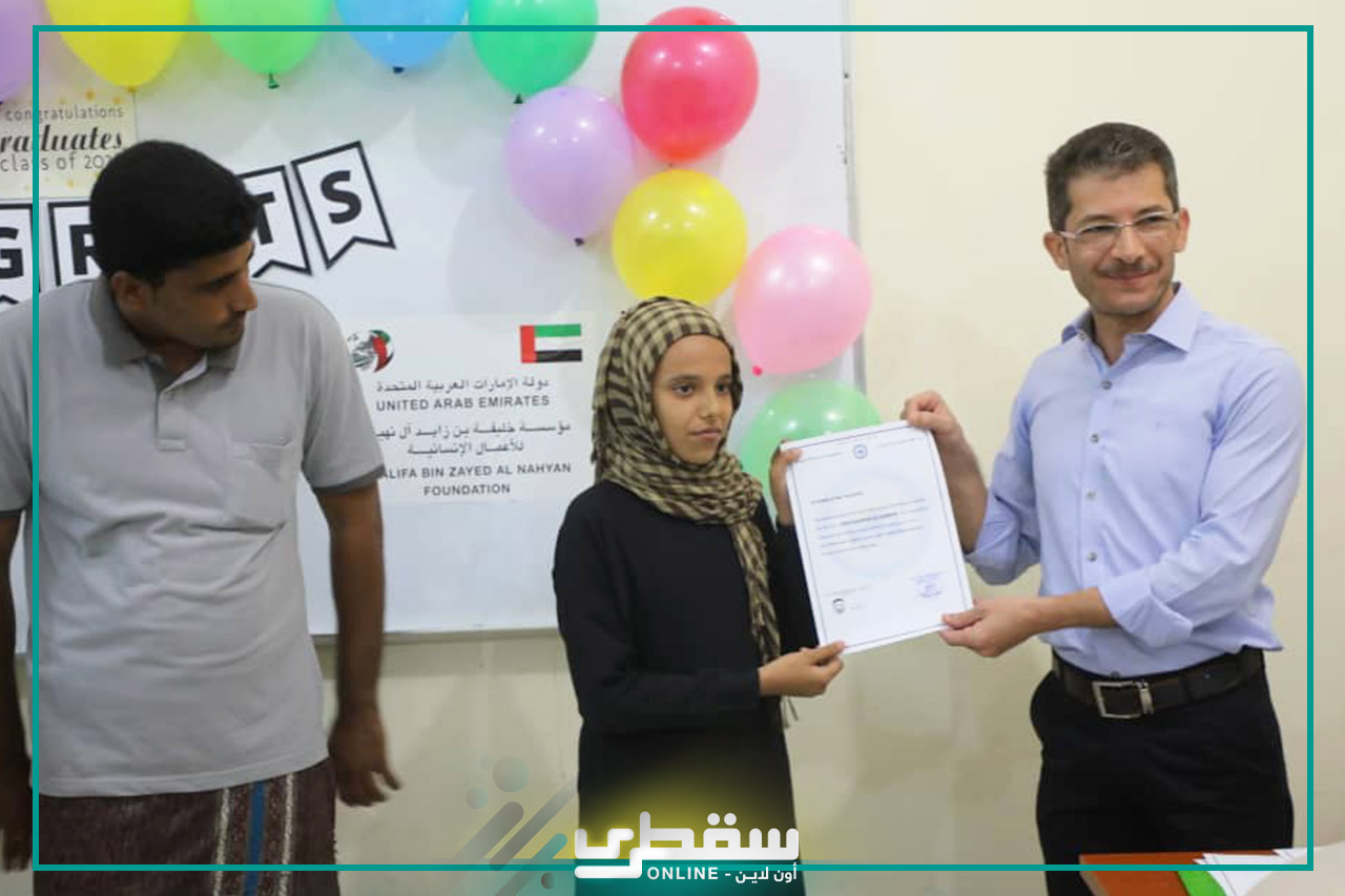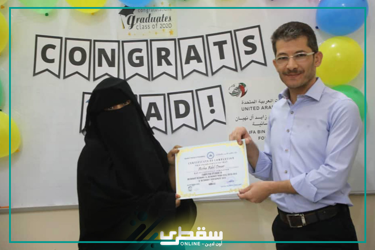Socotra Institute for Training and Consultation following Khalifa bin Zayed Al Nahyan Foundation honored new batch of students who successfully passed the current English and computer courses yesterday.