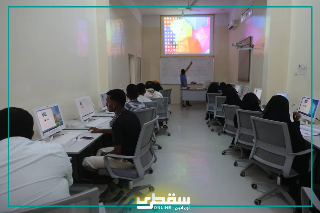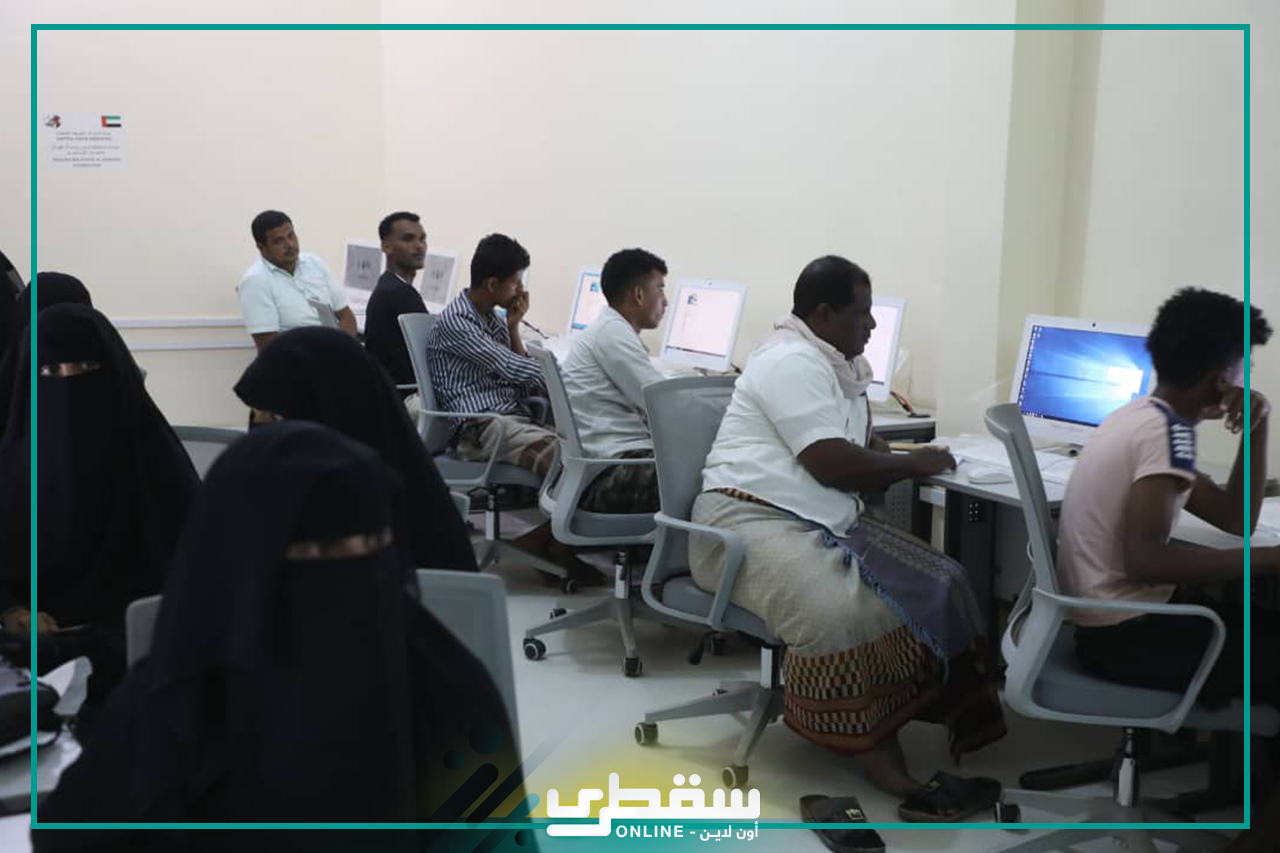 AbdelRahman Al Akhras, Deputy Director of Socotra Institute for Training and Consultation, highlighted that computer courses included windows and word with 38 male and female students and kindergarten course included 40 male and female students during the day and night periods.