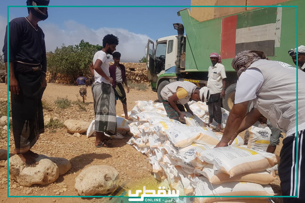 Socotra Online was present to reflect feedback of people during arrival of the vehicles. Sheikh Saeed Malek, Identifier of Qabhaten, expressed his gratitude and appreciation to the UAE and Khalifa Foundation for helping people of Qabhaten through sending the food assistance, that would contribute to mitigating suffers of people. He indicated that people of Socotra used to witness help from Khalifa Foundation and the UAE.