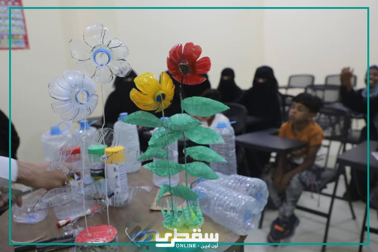 In line with the great concern with the environmental sector and encouragement of the people to utilize waste for avoidance of its harm, Khalifa Foundation worked on supporting the environmental sector and hygiene in Socotra. Yesterday morning, the Foundation conducted different training courses on recycling of plastic waste for utilization of the same and avoidance of harm.