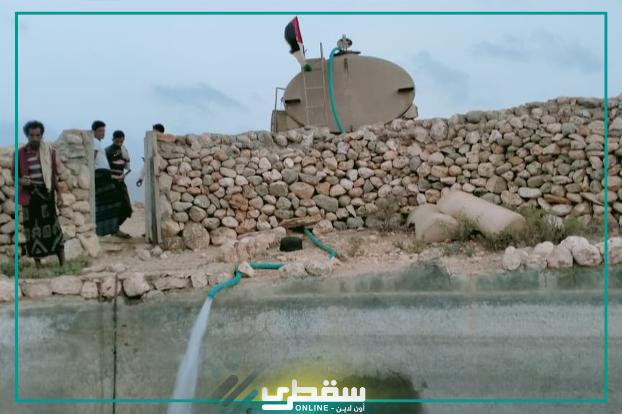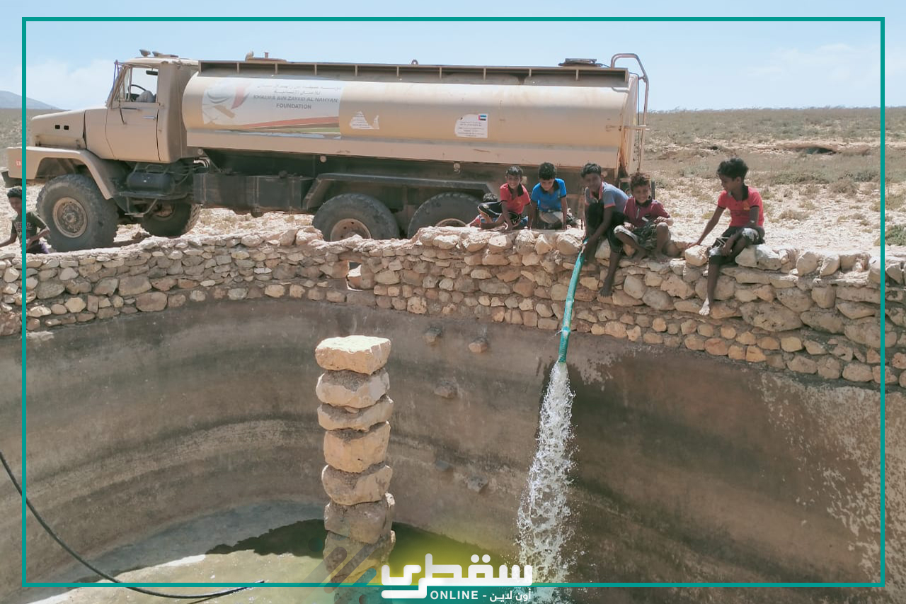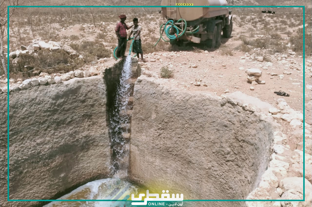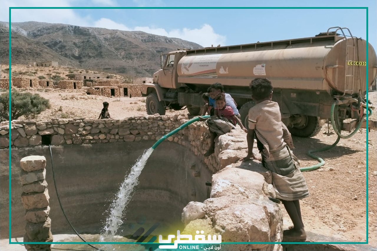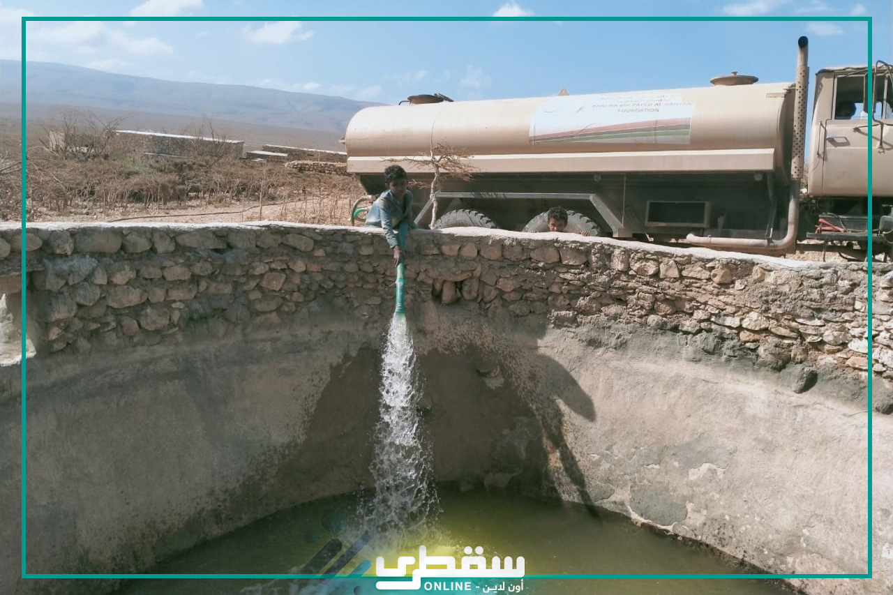 Khalifa bin Zayed Al Nahyan Foundation sent vehicles of potable water tanks to Qabhaten in West Socotra as response to calls of citizens to meet their daily needs of potable water due to lack of rain.