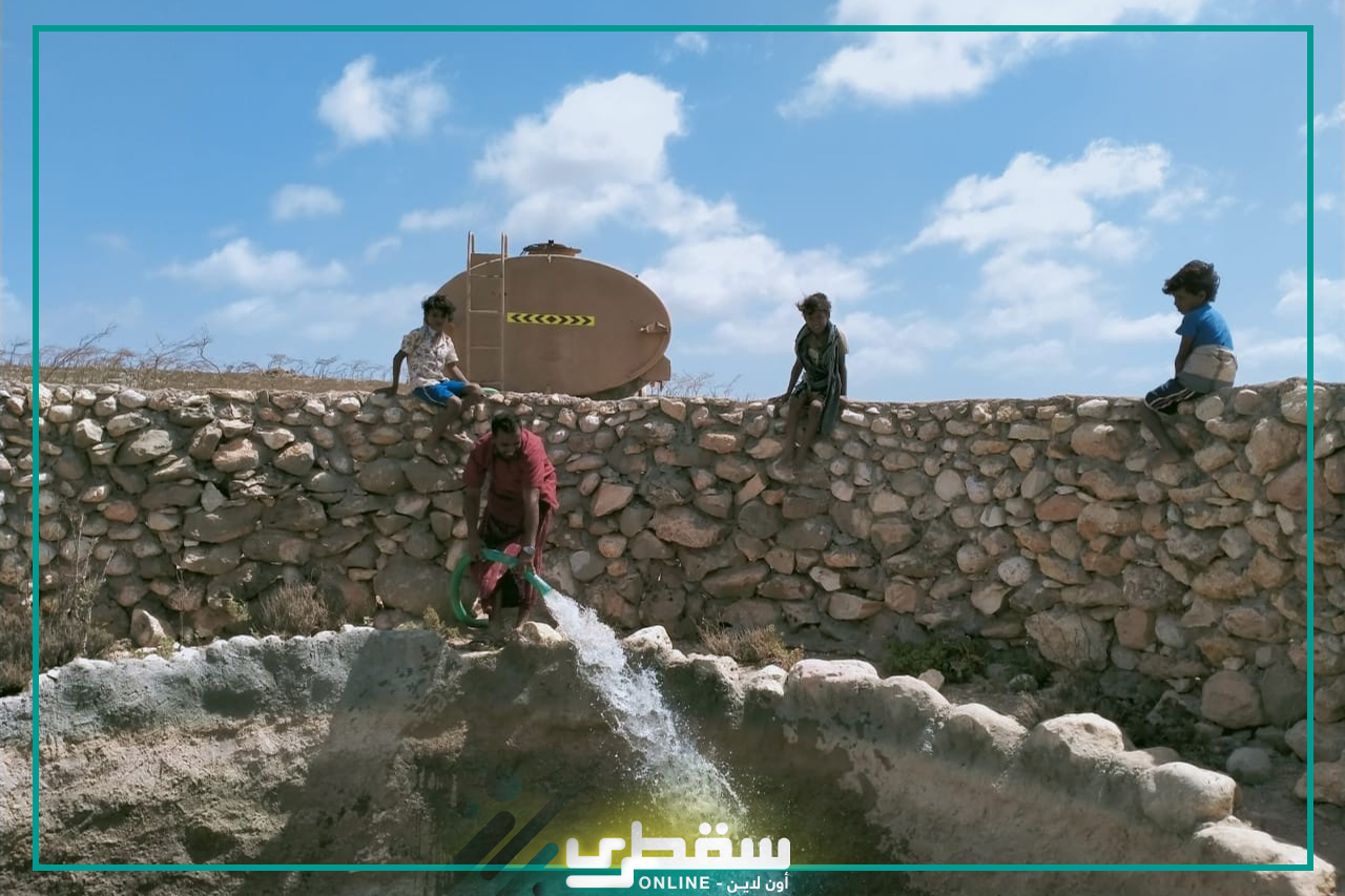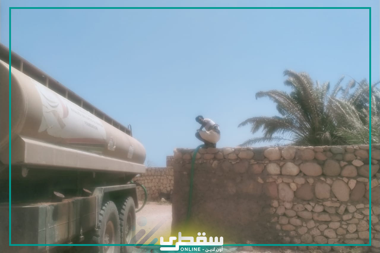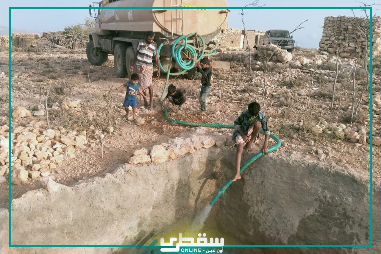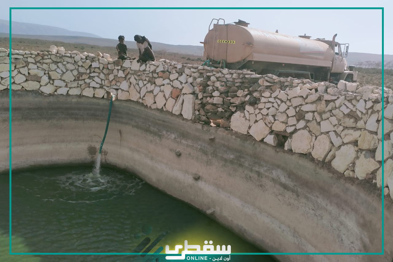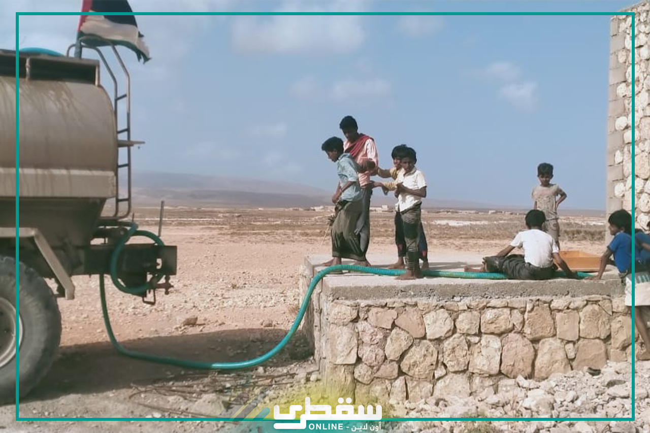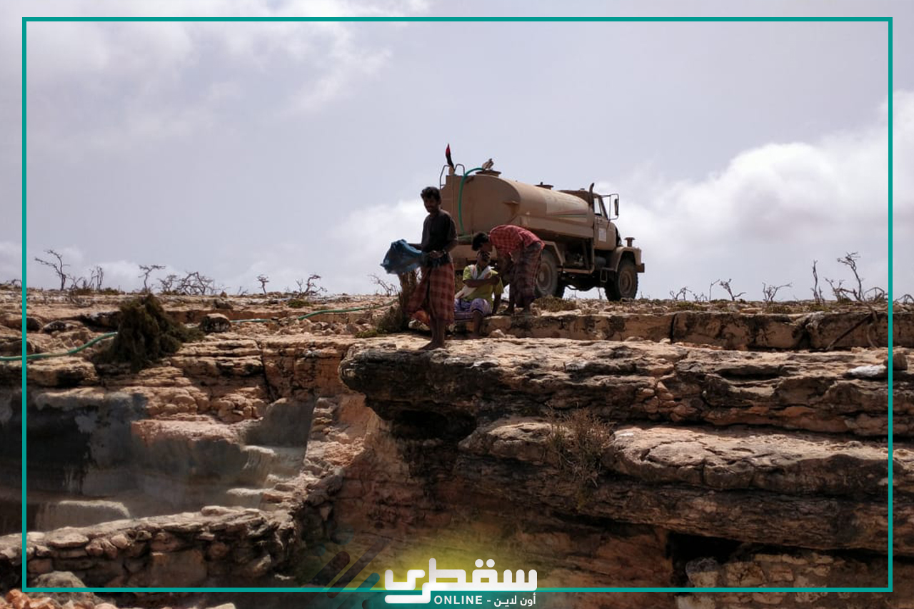 Khalifa bin Zayed Al Nahyan Foundation sent vehicles of potable water tanks to Qabhaten in West Socotra as response to calls of citizens to meet their daily needs of potable water due to lack of rain.
