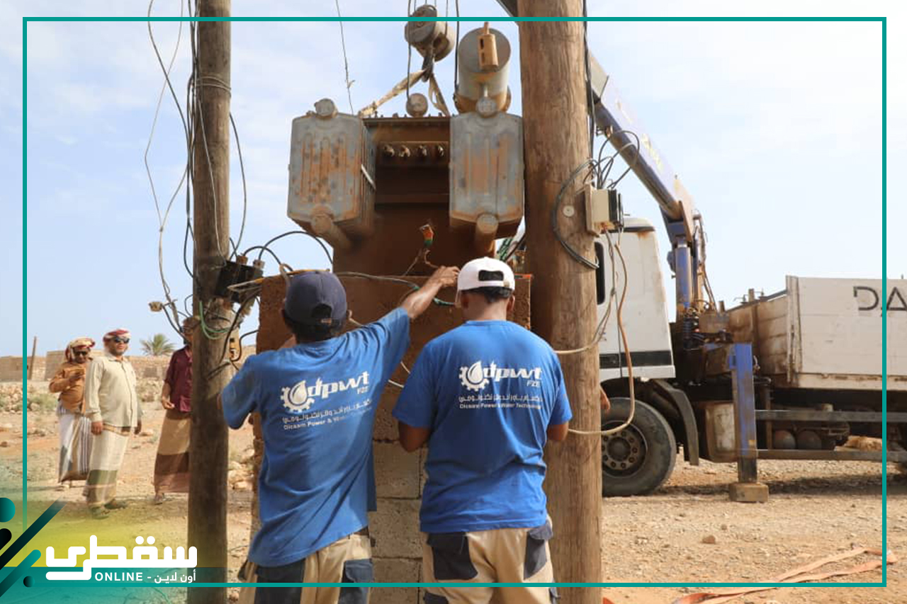 Engineer Ahmed Adel said that this change was in line with the concern of Khalifa Foundation with supporting electricity sector in Socotra through replacement of old transformers with new ones with higher capacity.