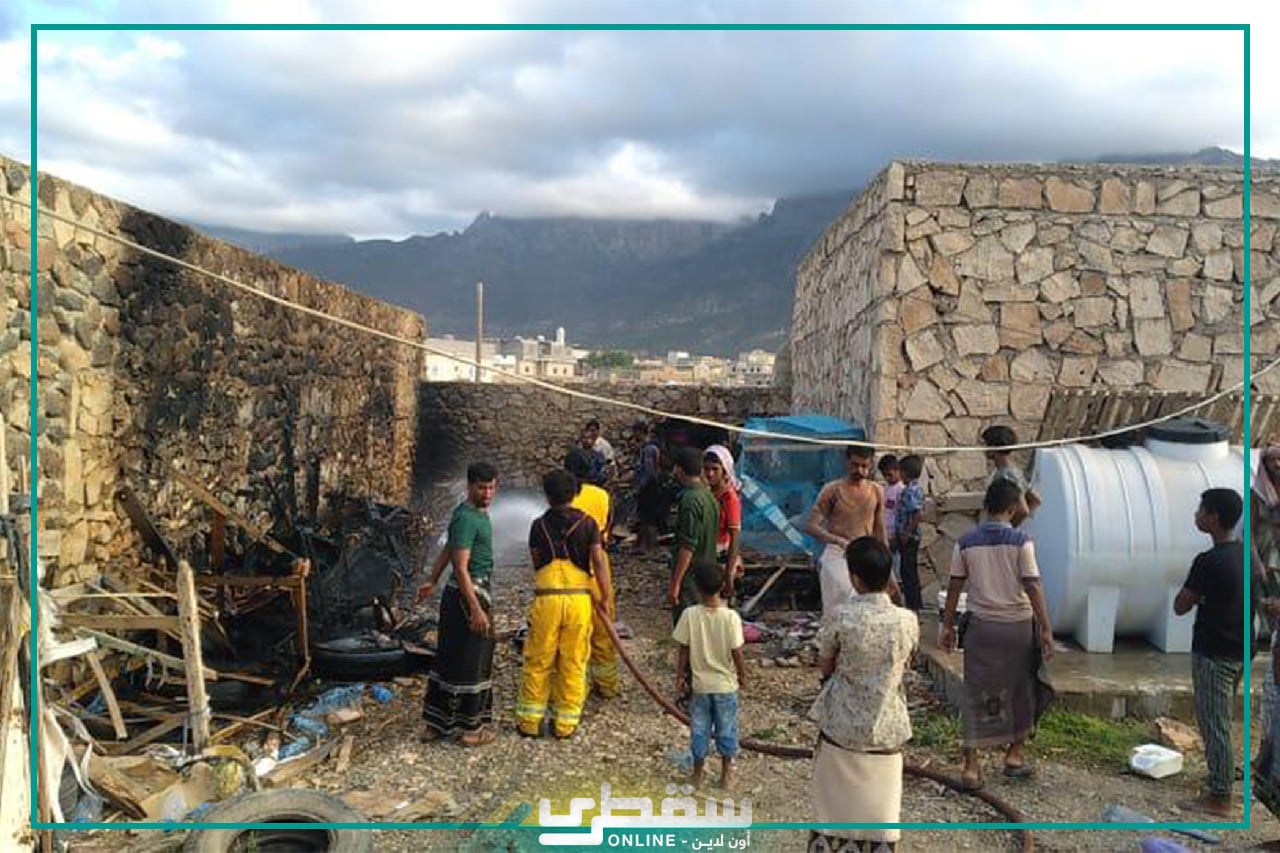 An official source in the Civil Defense said that the team went fully prepared after receiving a report at 4:30 pm that a fire broke out in Hadiboh city center in a residential unit owned by a citizen in Hadiboh.