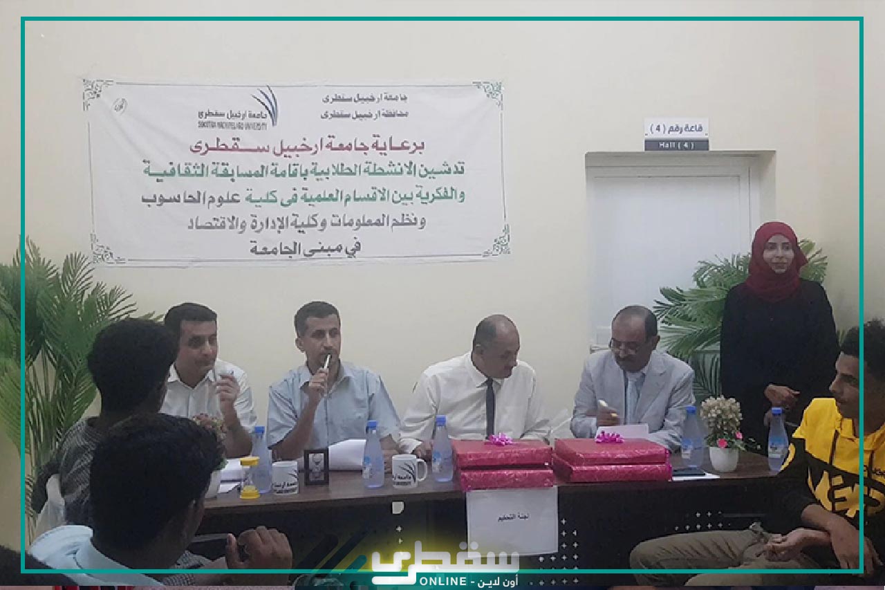 Yesterday, Socotra Archipelago University held a cultural and intellectual competition between the departments of the two faculties of information systems and computer science, and the faculty of administration and economics.