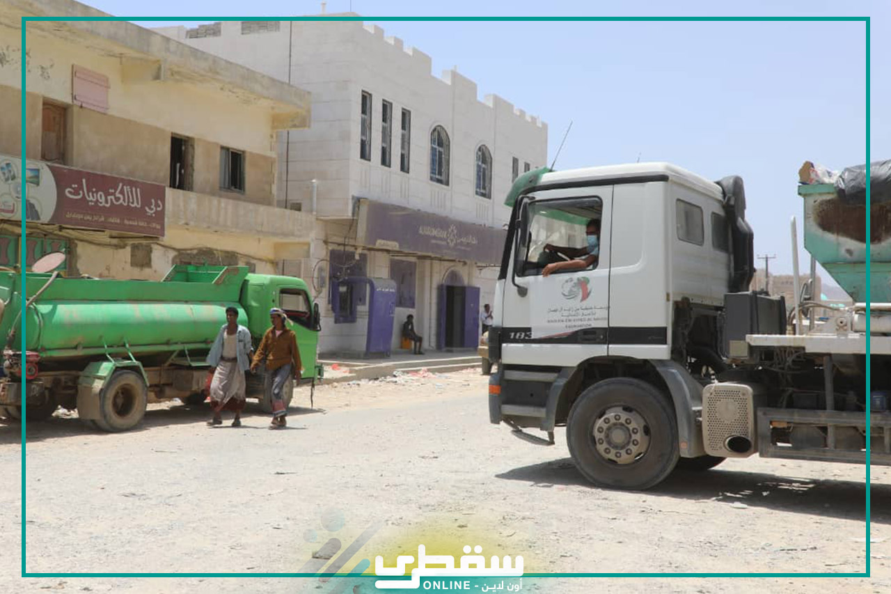 With support of Khalifa Foundation, Cleaning Fund in Socotra launched a wide cleaning campaign in different streets and markets of Socotra with a wide participation of Development Committee, local authorities, transitional council, security sector, military sector, and citizens. Different machines and transportation means were used to remove tens of tons of waste from streets and public areas.