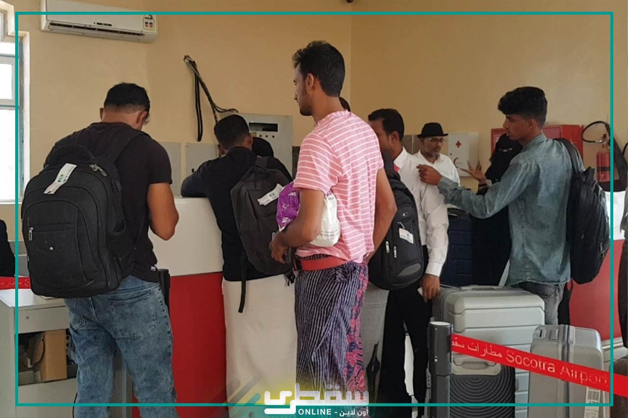 The students from the sons of Socotra on scholarships to study in Egyptian universities at the expense of the Khalifa bin Zayed Al Nahyan Foundation for Humanitarian Works today left the island to continue their studies at their different levels and specializations.